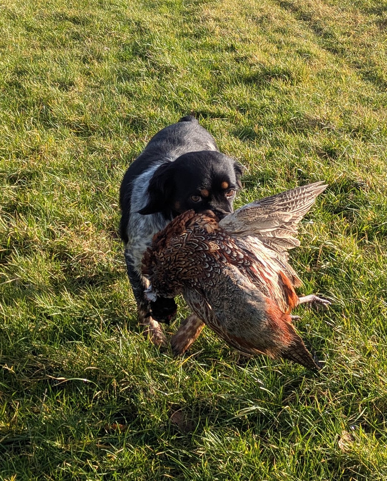 “Ted” is the grandson of our beloved Patouche Djinnie (7th generation of Patouche), born in 2018, he came to live with us later in life (at age 4.5 years) – but with excellent hips, has a natural bobtail and proving to be a keen pointer and retriever, he is also my daughter’s dog.